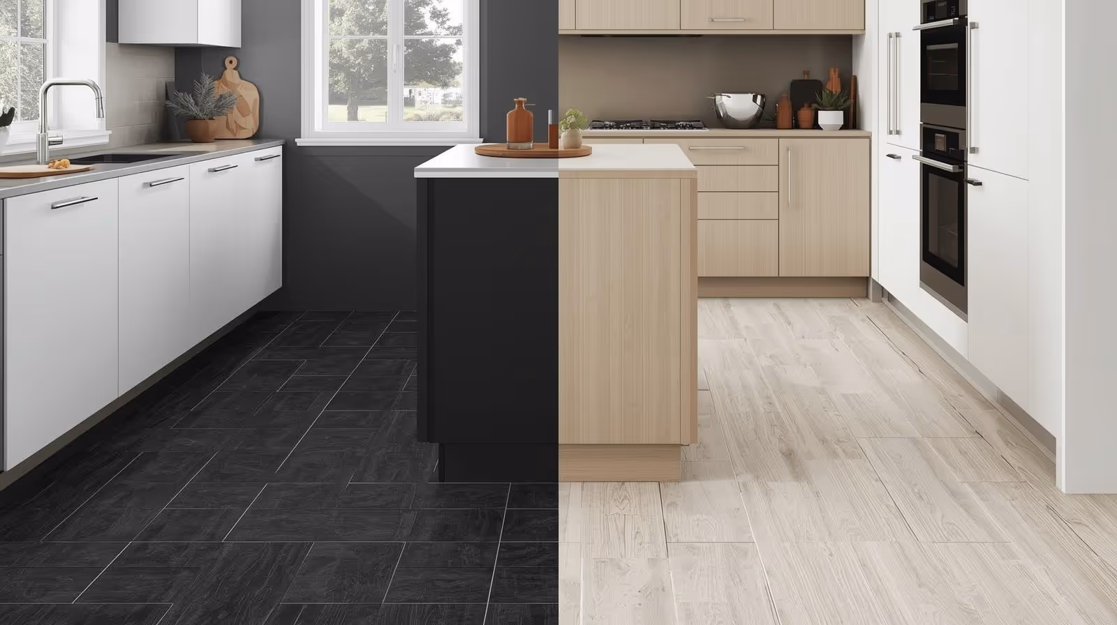 Play with contrast and color schemes to create visual interest and depth, starting from the ground up with these vinyl kitchen flooring ideas. A dark tiled floor with light cabinetry, or vice versa, can make a statement.
